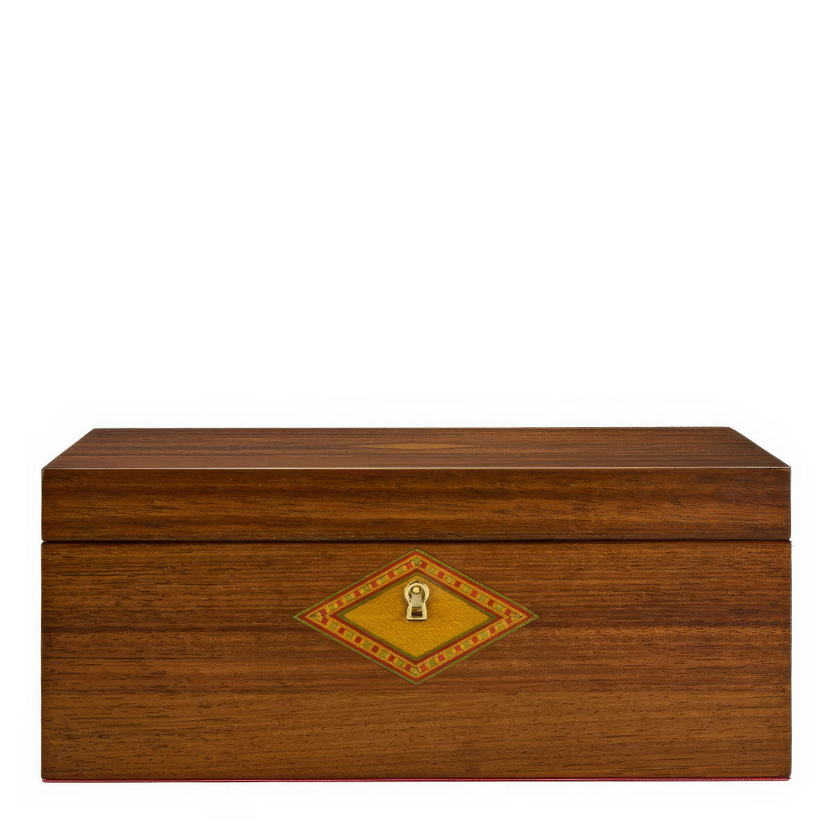- ダイヤモンド型の寄木細工が施されたFSC認証のウォールナット材突き板の外装